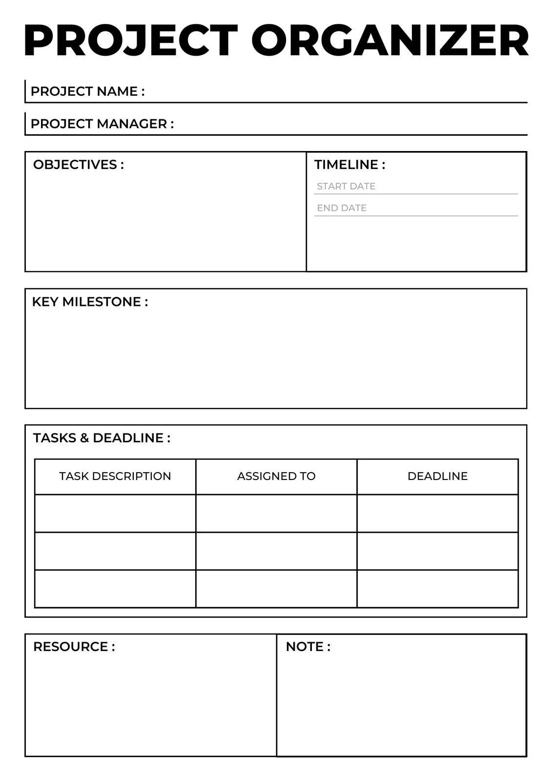 A structured printable worksheet designed to organize goals, timelines, and tasks, making project management simple and effective.